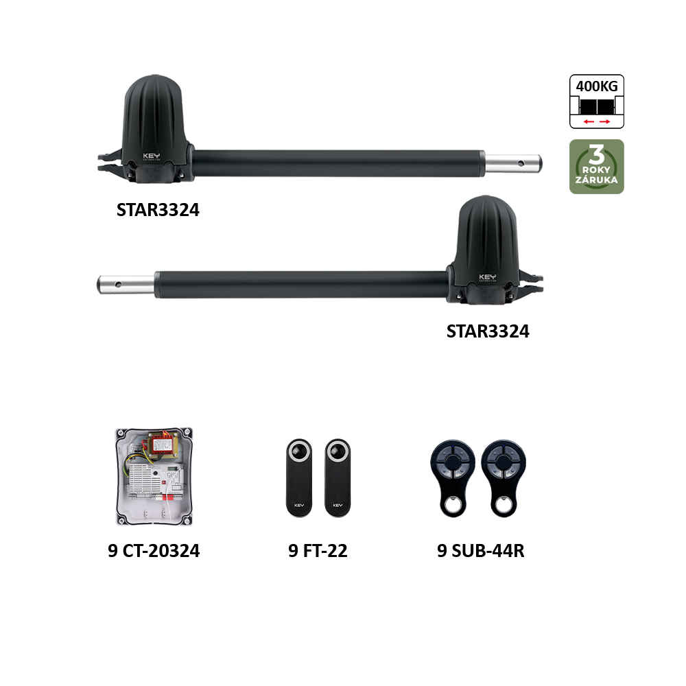 900KSTAR3324KS sada je ideálna pre automatizáciu vašej existujúcej dvojkrídlovej brány s maximálnou dĺžkou jedného krídla do 3 m.