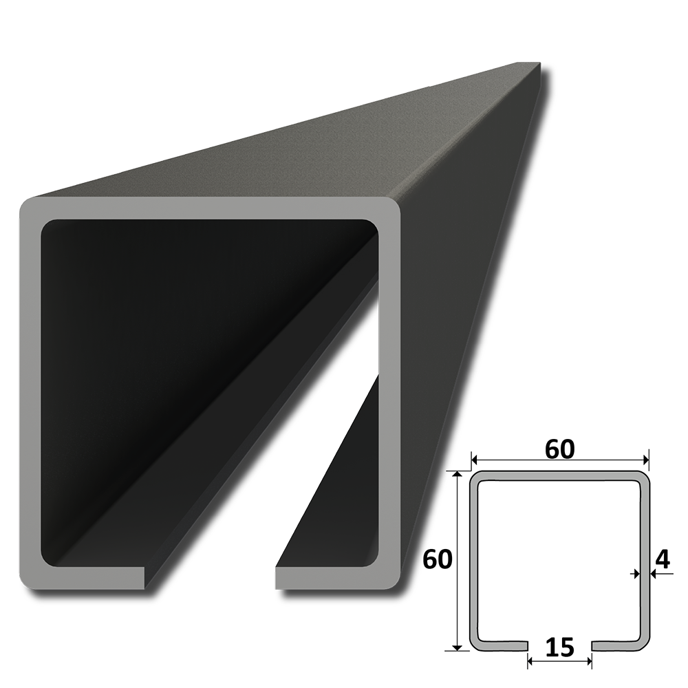 Úvod » Bránové systémy » Samonosný systém » Profily » C profil 60 x 60 x 4 x 2000 mm, černý Fe