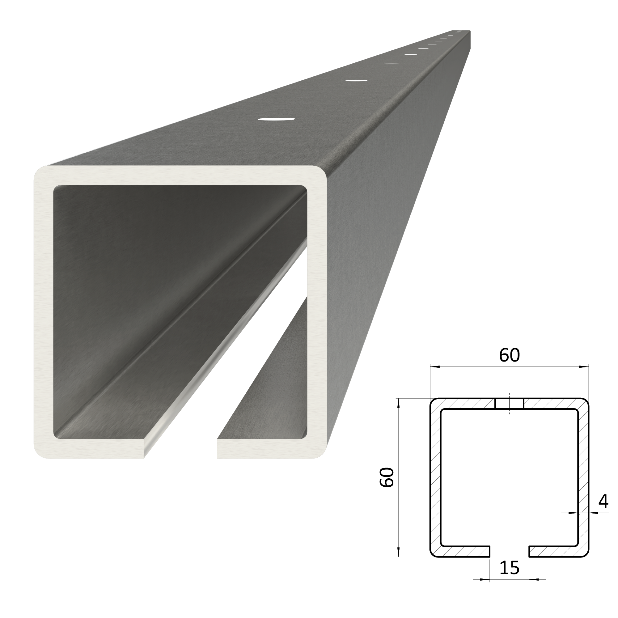 Úvod » Bránové systémy » Samonosný systém » Profily » C profil 60 x 60 x 4 x 4000 mm s otvory, pozinkovaný