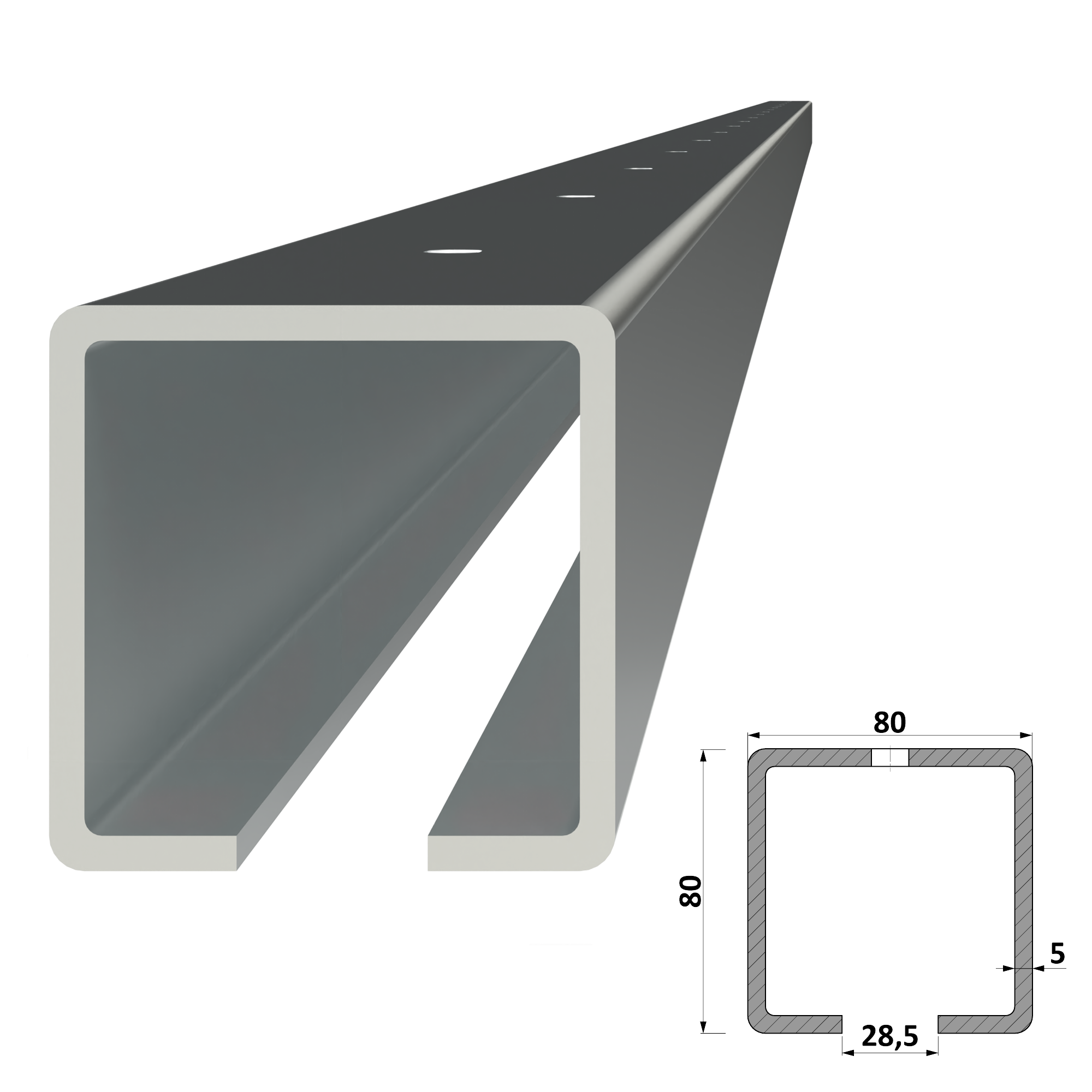 Úvod » Bránové systémy » Samonosný systém » Profily » C profil 80 x 80 x 5 x 3000 mm s otvory, pozinkovaný