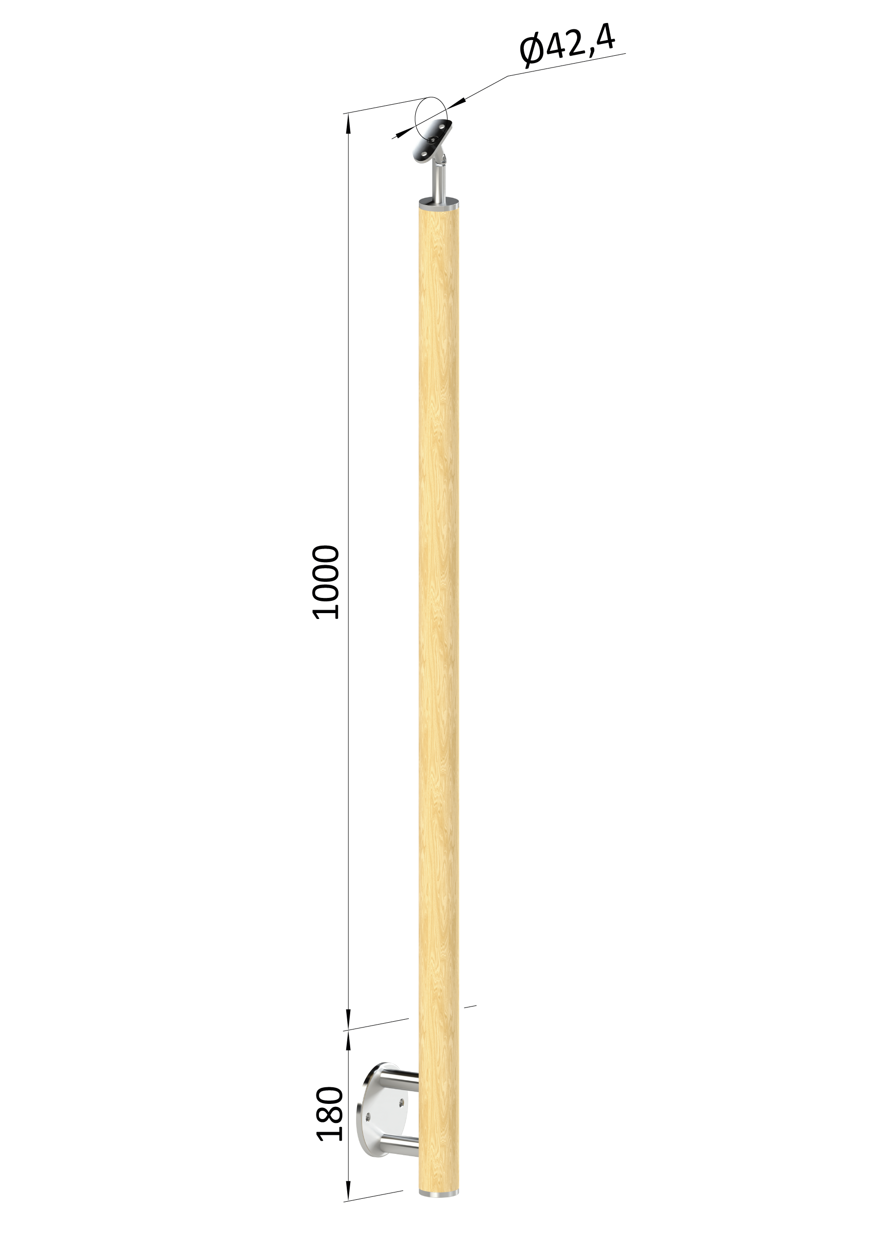 Úvod » Zabradlí a madla » Dřevěné kruhové sloupy » Vrchní kotvení "bez výplně" » Dřevěný sloup, boční kotvení, bez výplně