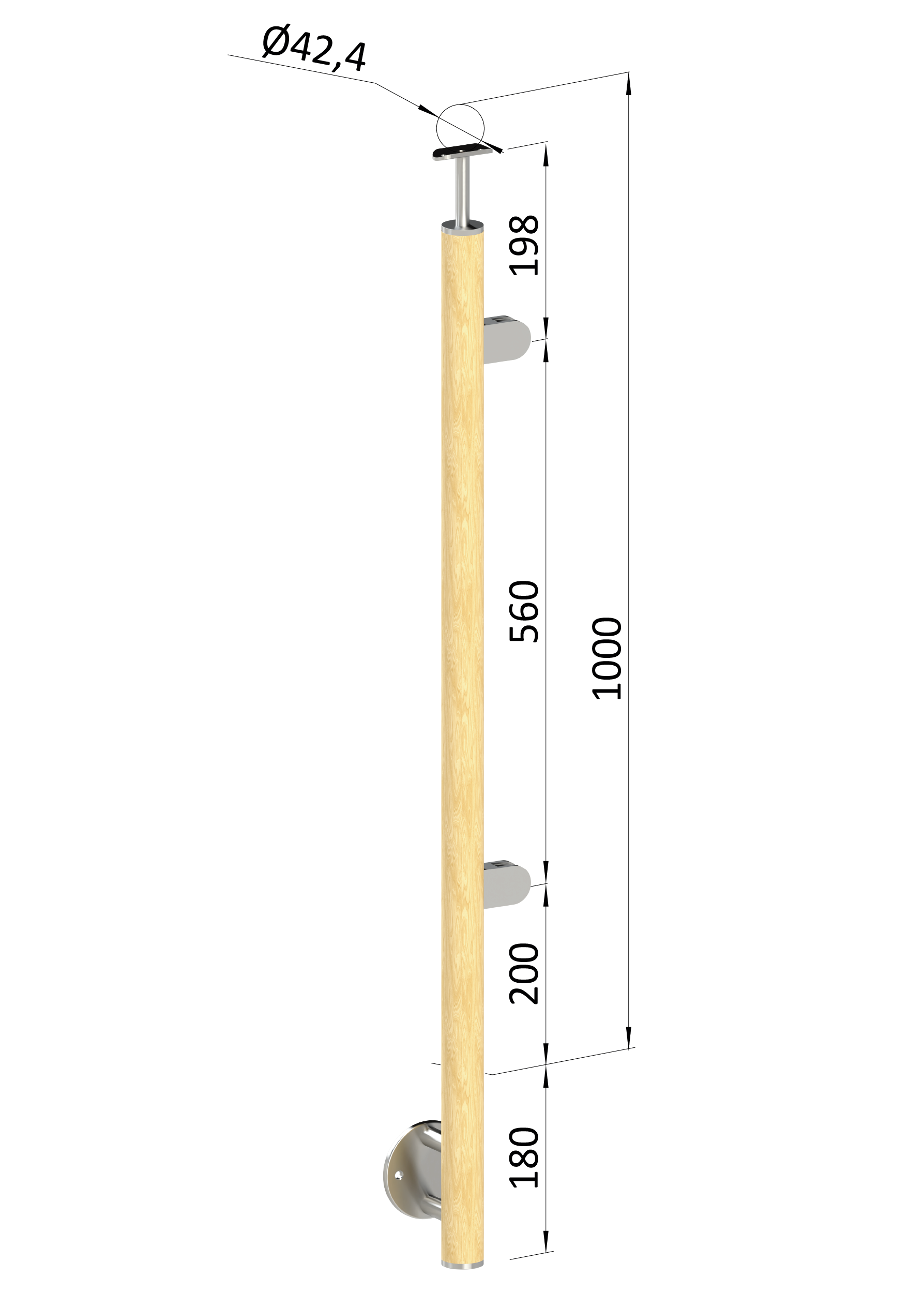 Úvod » Zabradlí a madla » Dřevěné kruhové sloupy » Boční kotvení se svorkami pro sklo » Dřevěný sloup, boční kotvení, výplň: sklo, pravý