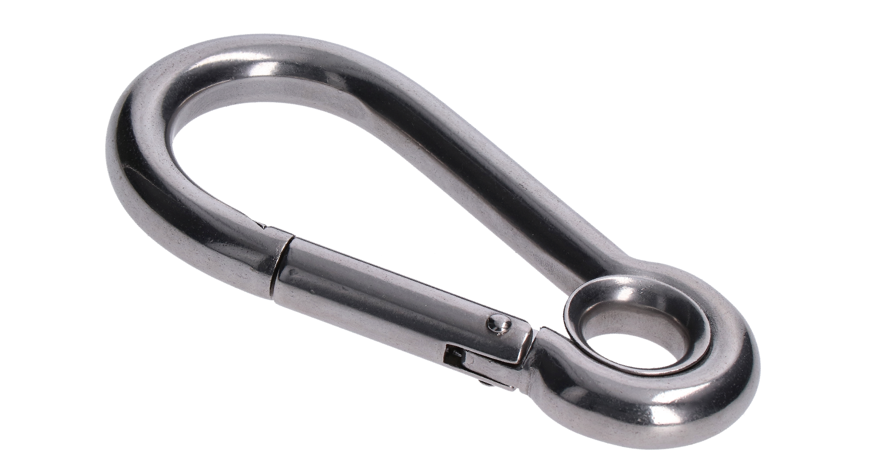 Úvod » Spojovací materiál » Nerezový spojovací materiál » Příslušenství pro řetězy a lana » Karabina s očnicí, 10 x 100 mm, Art.8250 A4/AISI 316
