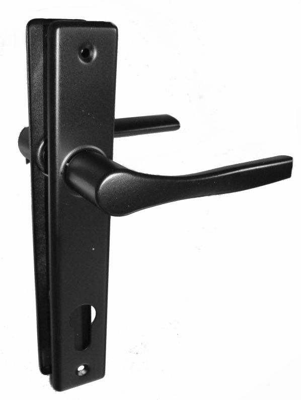 Kľučka Al, štít Fe, rozteč 90mm, farba čierna, s otvorom pre stavebnú vložku