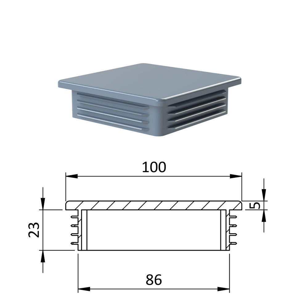 Úvod » Dům, dílna, zahrada » Zátky, stříšky, nivelační nožičky » Plastové zátky » Krytka plastová 100 x 100 mm, šedá