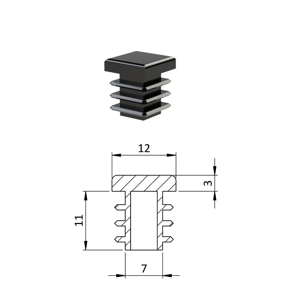 Úvod » Dům, dílna, zahrada » Zátky, stříšky, nivelační nožičky » Plastové zátky » Krytka plastová 12 x 12 mm, černá