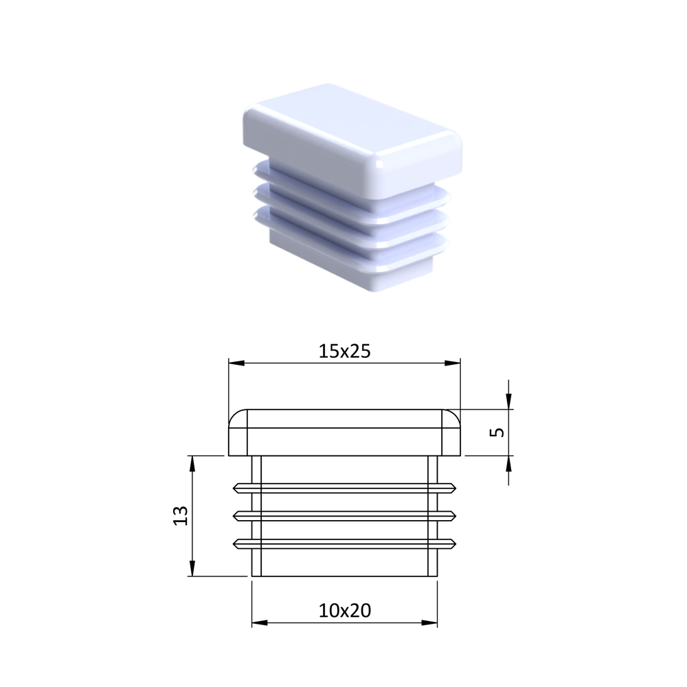 Úvod » Dům, dílna, zahrada » Zátky, stříšky, nivelační nožičky » Plastové zátky » Krytka plastová 15 x 25 mm, bílá