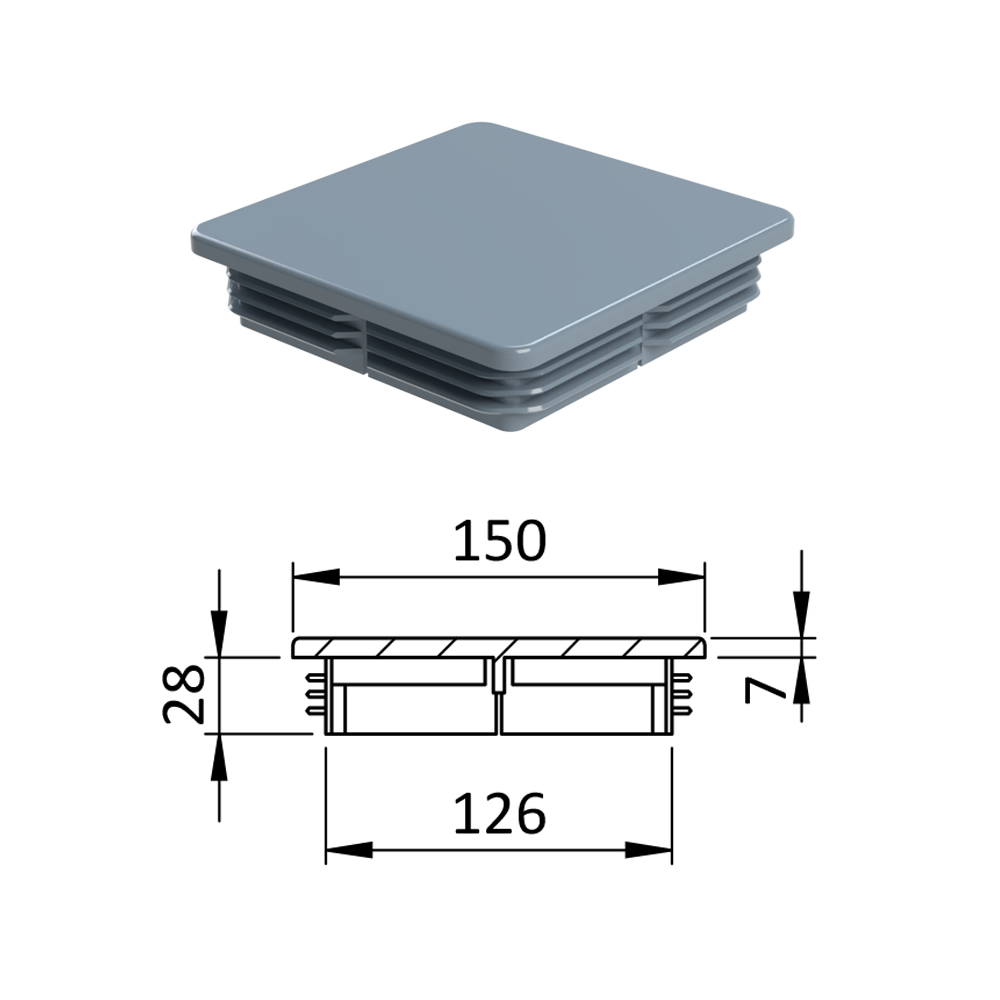 Úvod » Dům, dílna, zahrada » Zátky, stříšky, nivelační nožičky » Plastové zátky » Krytka plastová 150 x 150 mm, šedá
