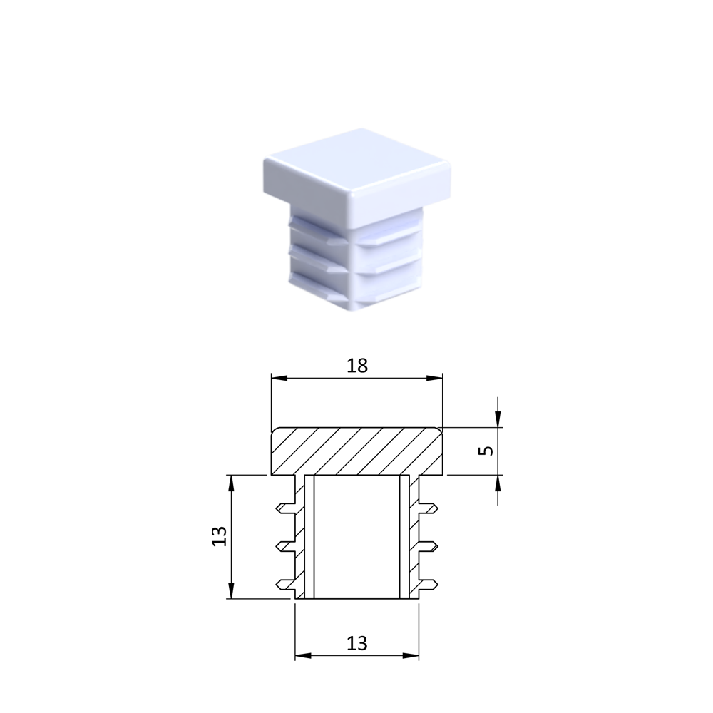 Úvod » Dům, dílna, zahrada » Zátky, stříšky, nivelační nožičky » Plastové zátky » Krytka plastová 18 x 18 mm, bílá
