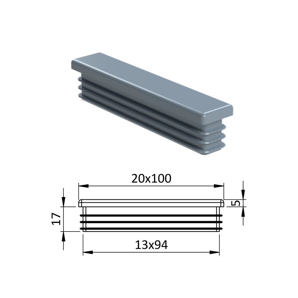 Úvod » Dům, dílna, zahrada » Zátky, stříšky, nivelační nožičky » Plastové zátky » Krytka plastová 20 x 100 mm, šedá