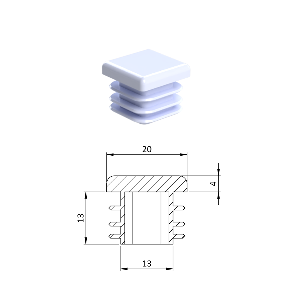 Úvod » Dům, dílna, zahrada » Zátky, stříšky, nivelační nožičky » Plastové zátky » Krytka plastová 20 x 20 mm, bílá