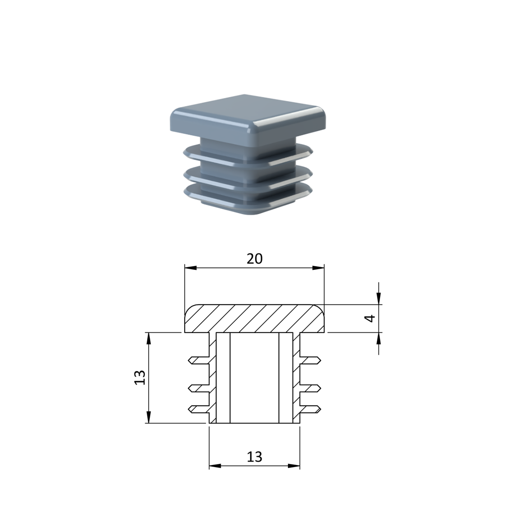 Úvod » Dům, dílna, zahrada » Zátky, stříšky, nivelační nožičky » Plastové zátky » Krytka plastová 20 x 20 mm, šedá