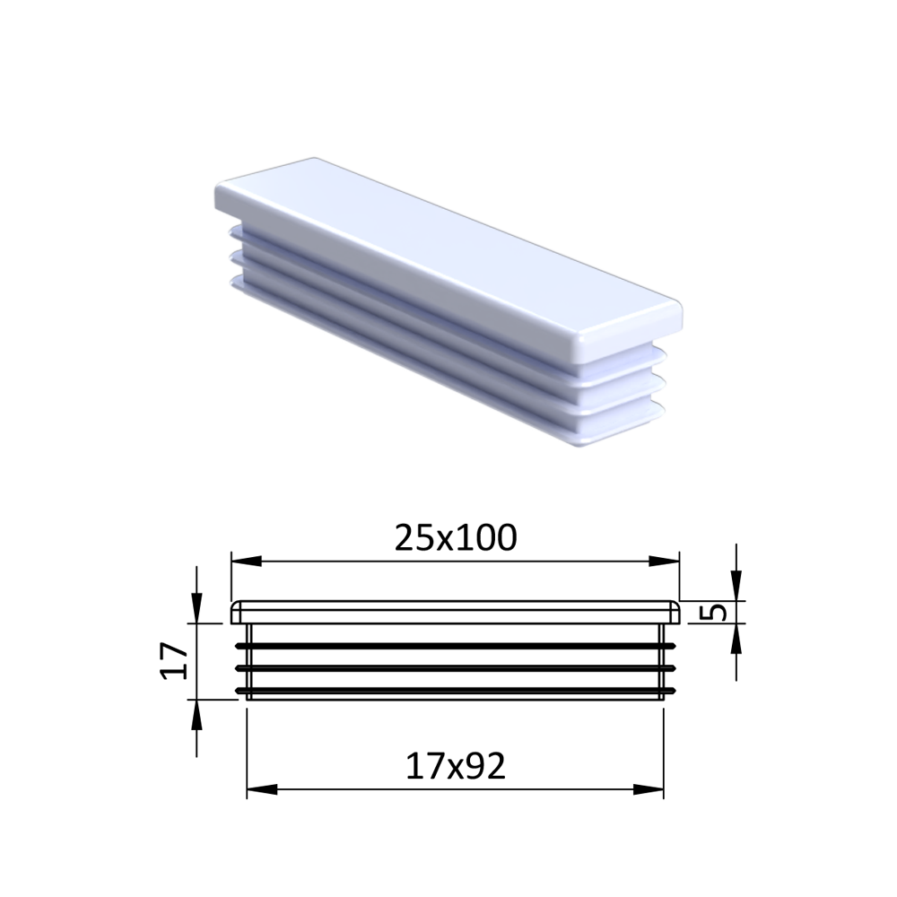 Úvod » Dům, dílna, zahrada » Zátky, stříšky, nivelační nožičky » Plastové zátky » Krytka plastová 25 x 100 mm