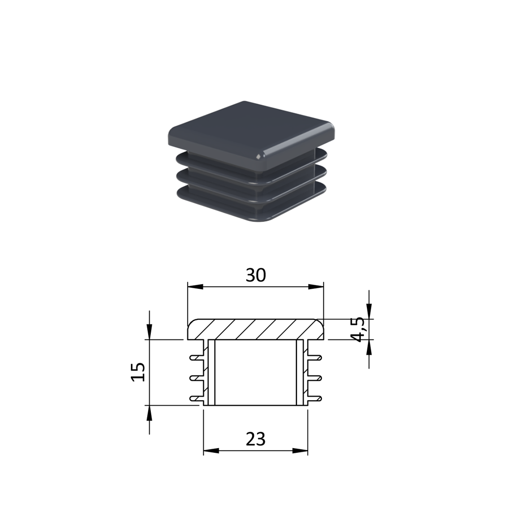 Úvod » Dům, dílna, zahrada » Zátky, stříšky, nivelační nožičky » Plastové zátky » Krytka plastová 30 x 30 mm, antracit