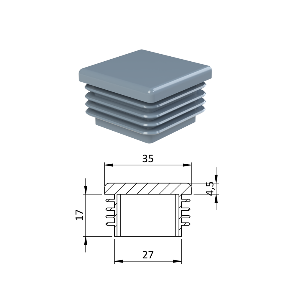 Úvod » Dům, dílna, zahrada » Zátky, stříšky, nivelační nožičky » Plastové zátky » Krytka plastová 35 x 35 mm, šedá