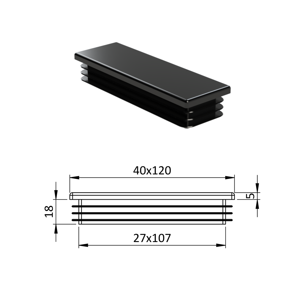 Úvod » Dům, dílna, zahrada » Zátky, stříšky, nivelační nožičky » Plastové zátky » Krytka plastová 40 x 120 mm