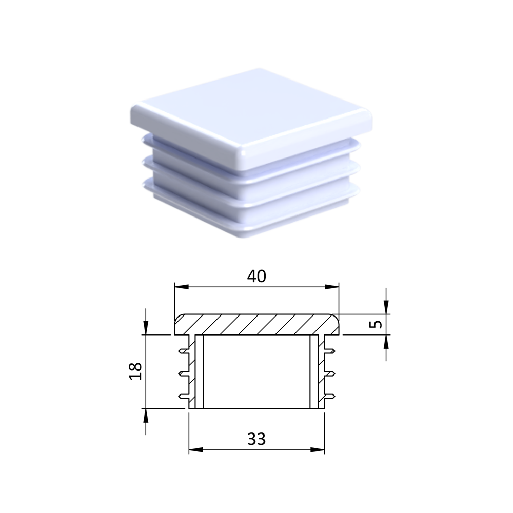 Úvod » Dům, dílna, zahrada » Zátky, stříšky, nivelační nožičky » Plastové zátky » Krytka plastová 40 x 40 mm, bílá