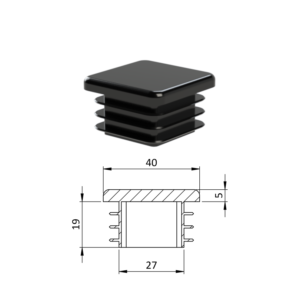 Úvod » Dům, dílna, zahrada » Zátky, stříšky, nivelační nožičky » Plastové zátky » Krytka plastová 40 x 40 x 3 - 5 mm, černá