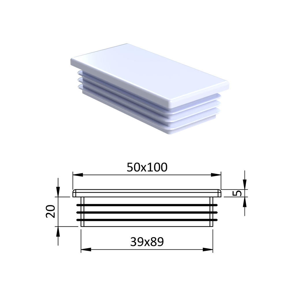 Úvod » Dům, dílna, zahrada » Zátky, stříšky, nivelační nožičky » Plastové zátky » Krytka plastová 50 x 100 mm