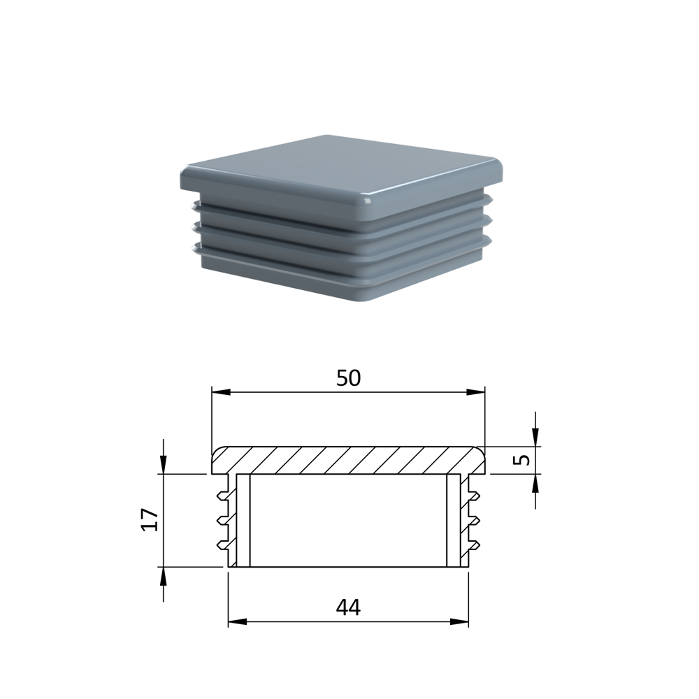 Úvod » Dům, dílna, zahrada » Zátky, stříšky, nivelační nožičky » Plastové zátky » Krytka plastová 50 x 50 mm, šedá