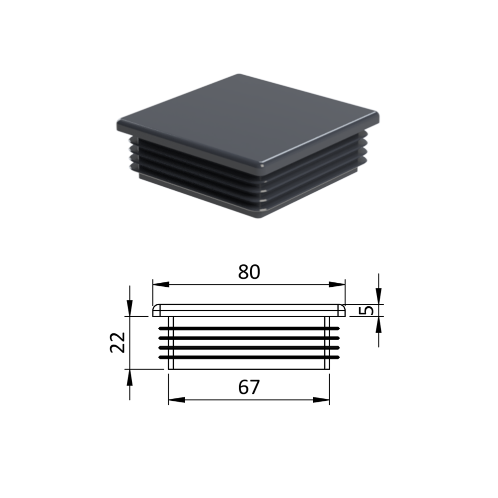 Úvod » Dům, dílna, zahrada » Zátky, stříšky, nivelační nožičky » Plastové zátky » Krytka plastová 80 x 80 mm, antracit
