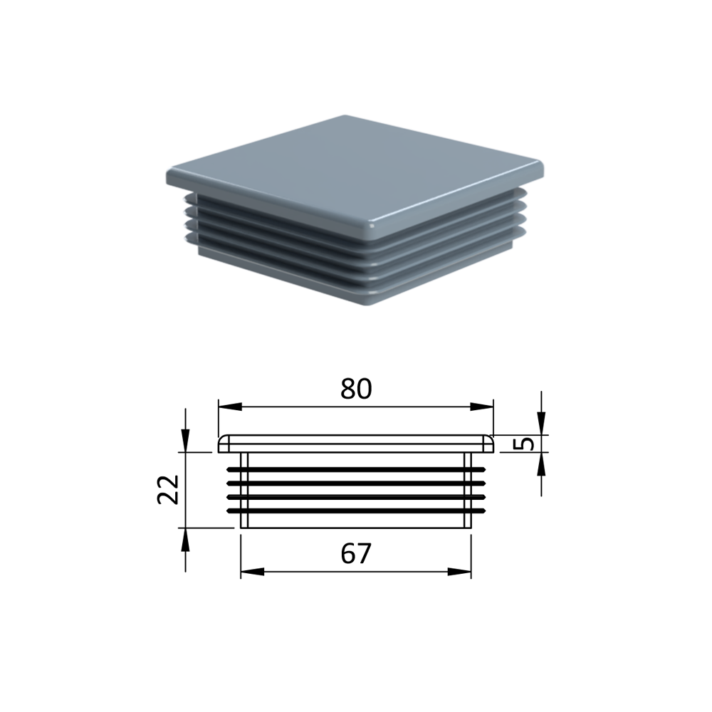 Úvod » Dům, dílna, zahrada » Zátky, stříšky, nivelační nožičky » Plastové zátky » Krytka plastová 80 x 80 mm, šedá