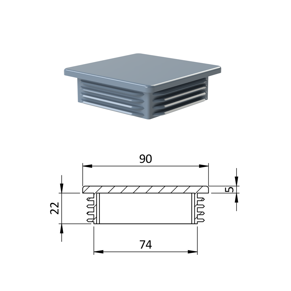 Úvod » Dům, dílna, zahrada » Zátky, stříšky, nivelační nožičky » Plastové zátky » Krytka plastová 90 x 90 mm, šedá