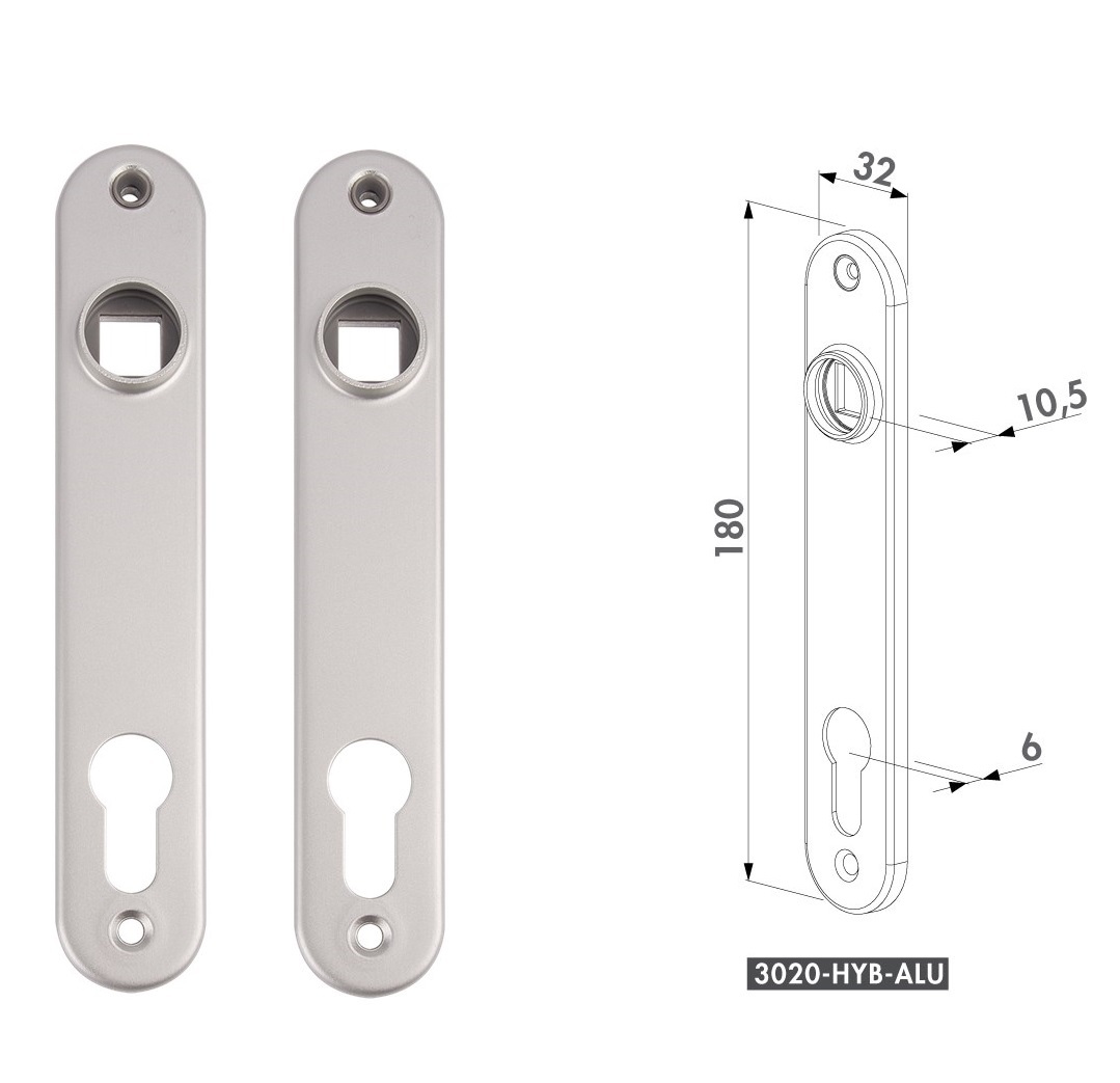 Krycí štít pro otvory kliky a cylindrické vložky zámků LOCINOX®. Materiál: hliník. Šrouby jsou součástí balení.