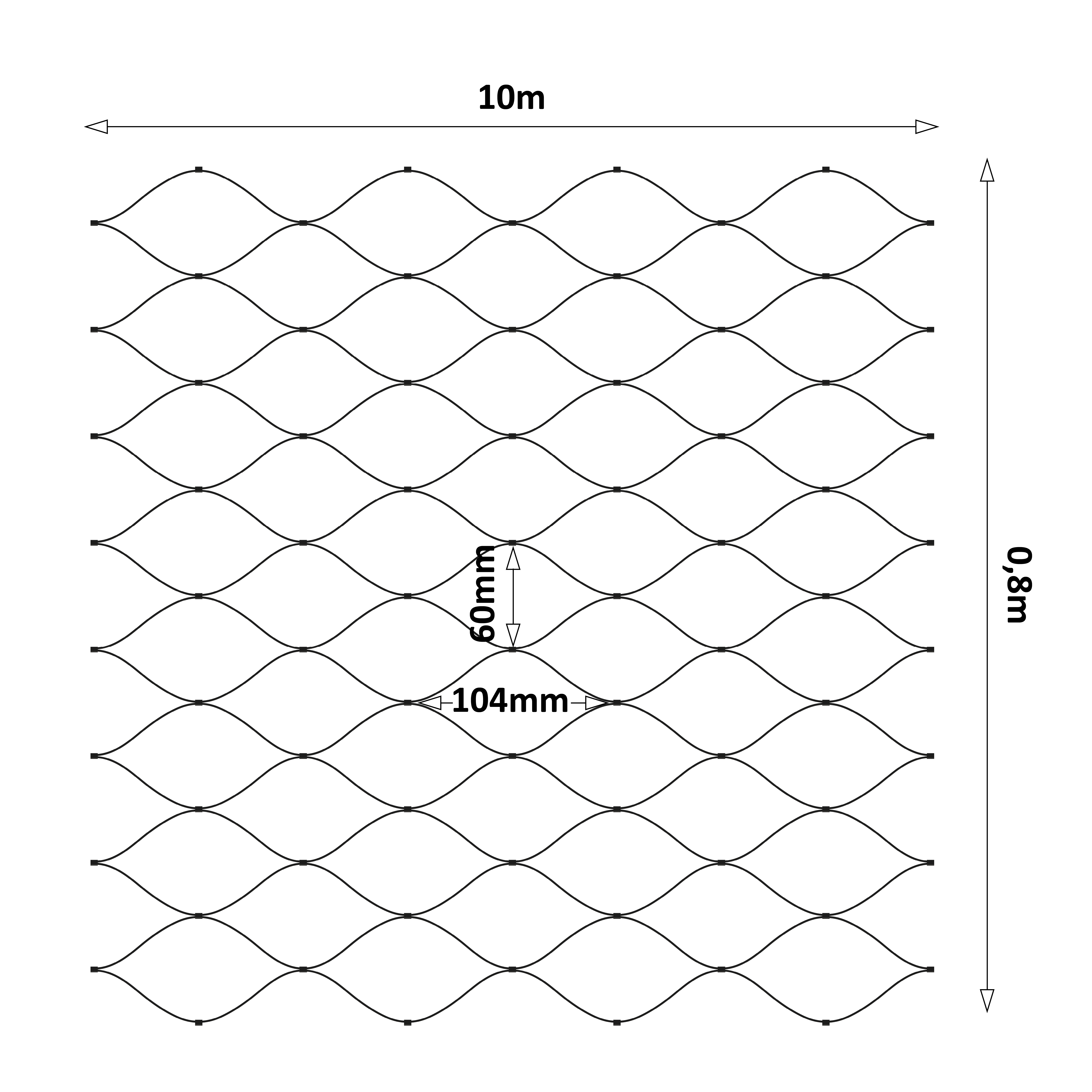 Nerezová lanková sieť, 0.8mx10m (šxd), oko 60x104mm, hrúbka lanka 2mm, AISI304 (V nerozloženom stave má sieť 11.92m)