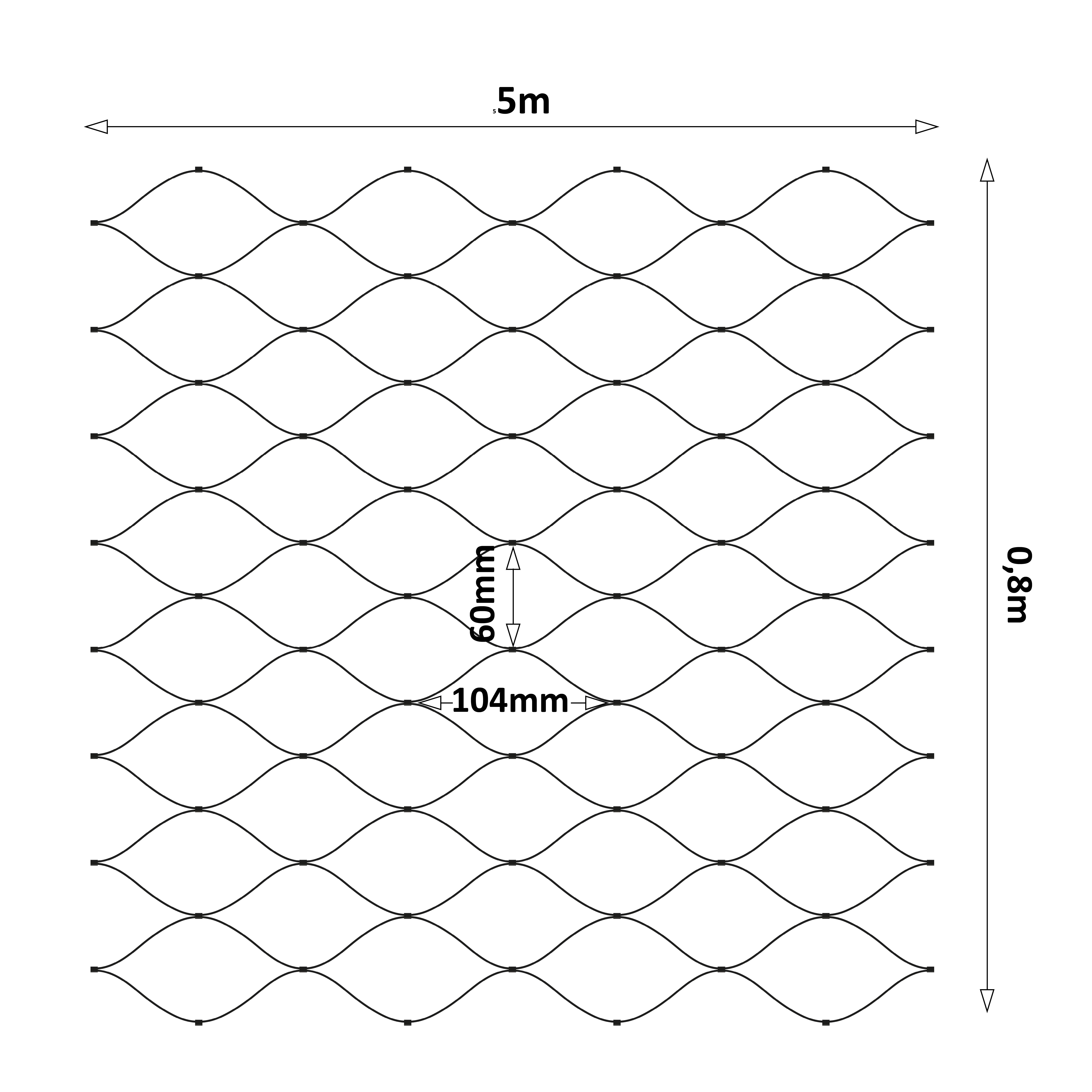 Úvod » Nerezové polotovary » Lankový systém » Lanková síť » Lanová sieť, 0,8 x 5 m, oko 60 x 104 mm, ø 2 mm, AISI 304