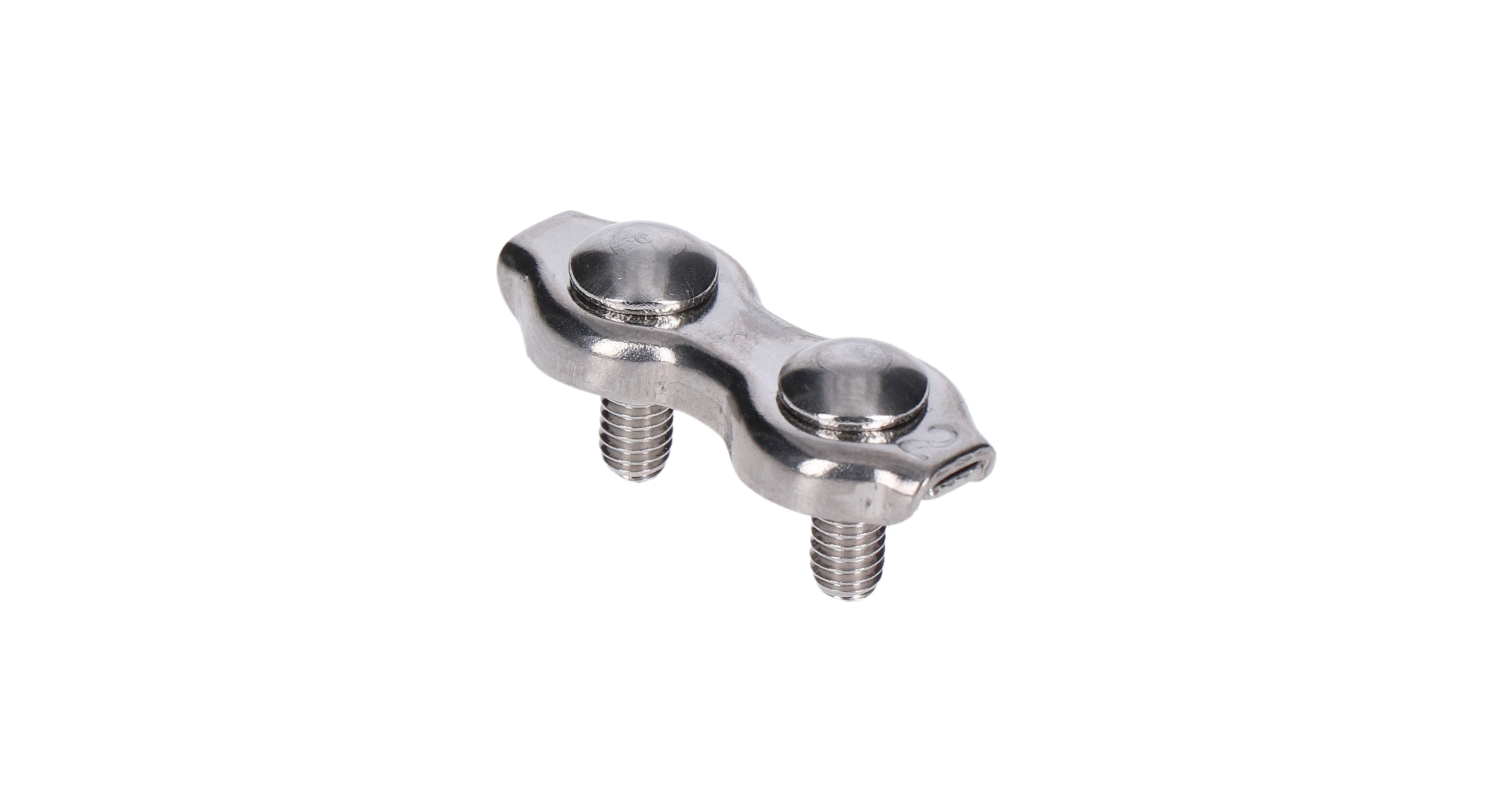 Úvod » Spojovací materiál » Nerezový spojovací materiál » Příslušenství pro řetězy a lana » Lanová svorka, duplex pro lanko ø 2 mm, broušená AISI 304