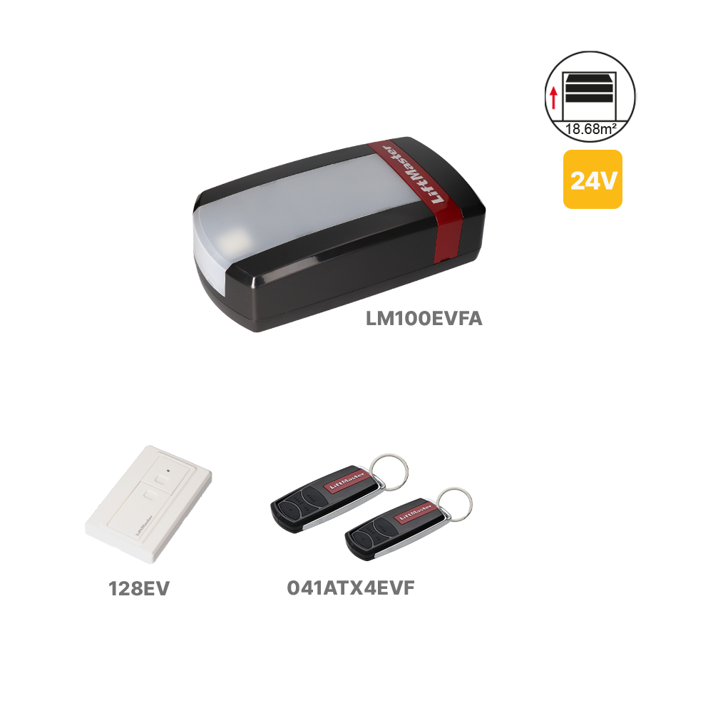 LiftMaster LM100EVFA je výkonný 24 V pohon určený pre garážové sekčné brány s hmotnosťou do 150 kg a maximálnymi rozmermi 5,75 m (šírka) × 3,25 m (výška). Vďaka rýchlosti otvárania a zatvárania 200 mm/s ide o jeden z najrýchlejších pohonov vo svojej triede. Navyše, s predĺženou zárukou 8 rokov na elektromotor získavate maximálnu spoľahlivosť a dlhodobú istotu.