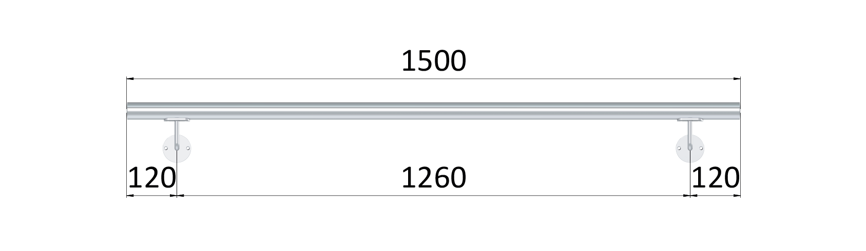 Úvod » Zabradlí a madla » Madla » Nerezová madla » Madlo ø 42.4mm, L-1500mm, leštěná nerez AISI304