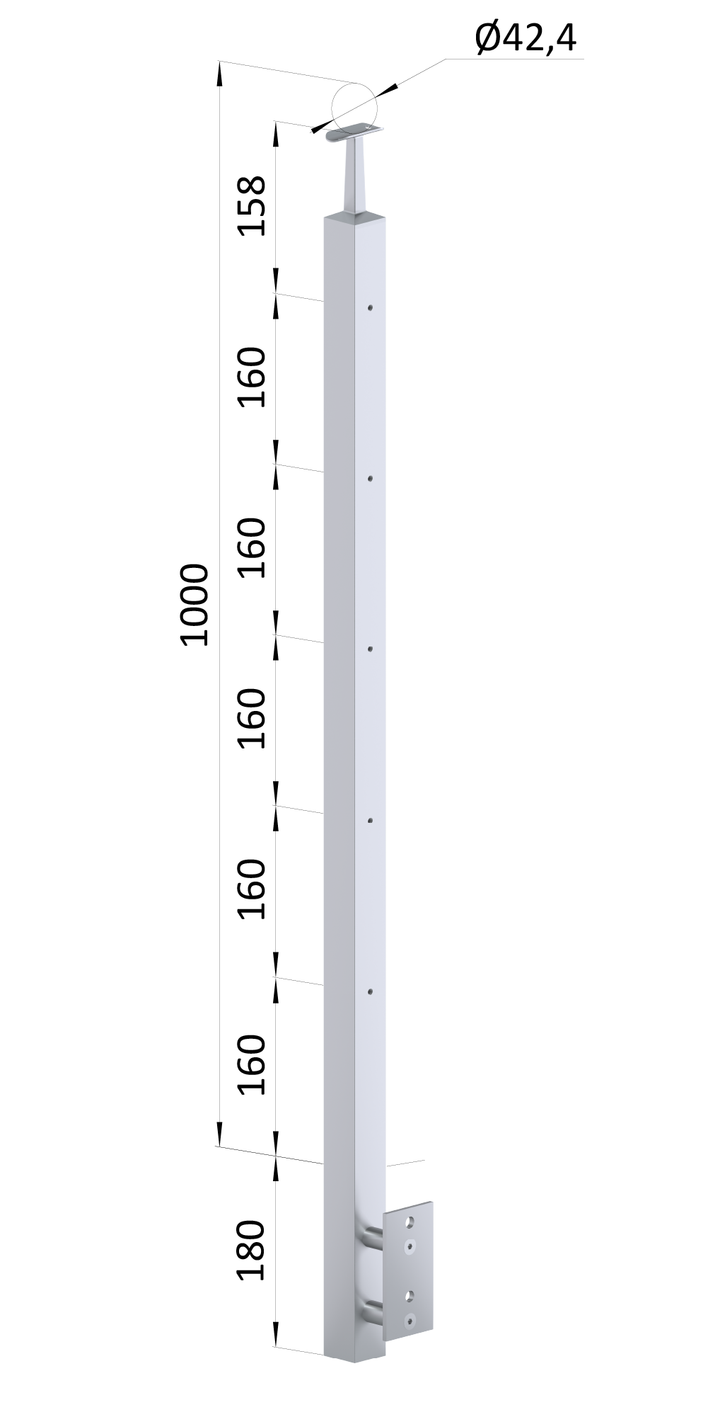Úvod » Zabradlí a madla » Nerezové čtvercové sloupy » Boční kotvení s úchytkami "vnitřní" » Nerezový sloup, boční kotvení, 5řadový M6, vnitřní