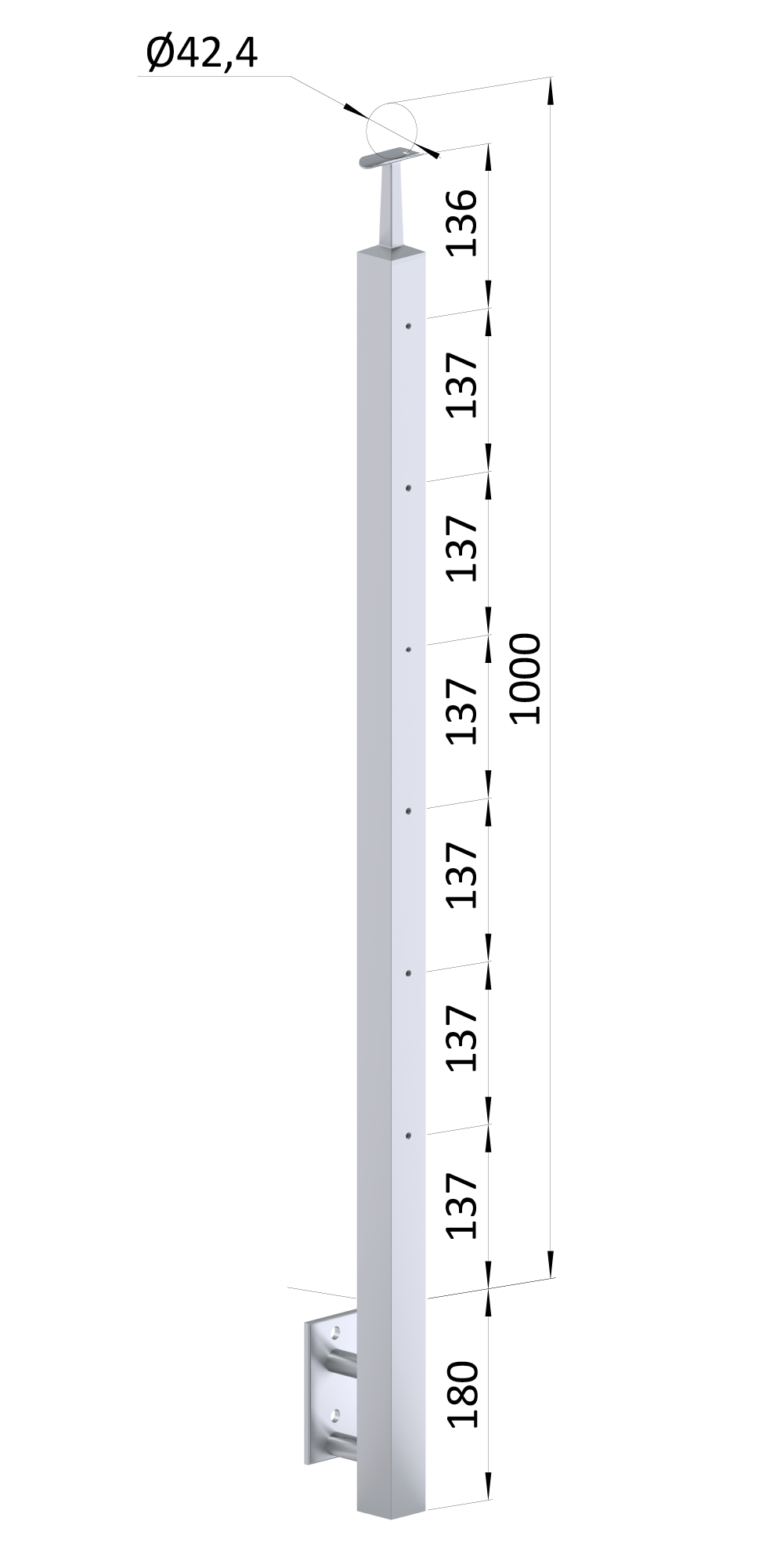 Úvod » Zabradlí a madla » Nerezové čtvercové sloupy » Boční kotvení s úchytkami "vnější" » Nerezový sloup, boční kotvení, 6řadový M6, vnější