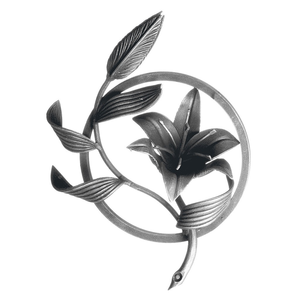 Úvod » Kované polotovary » Ornamenty » Ornament lile 400x300 mm, kruh ø250 mm, 12x12 mm, hladký