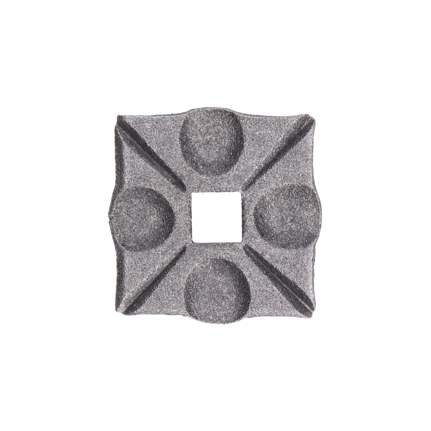 Úvod » Kované polotovary » Návleky, rozety, krytky » Rozety, patky » Patka 54 x 54 x 6 mm, otvor 12,5 x 12,5 mm