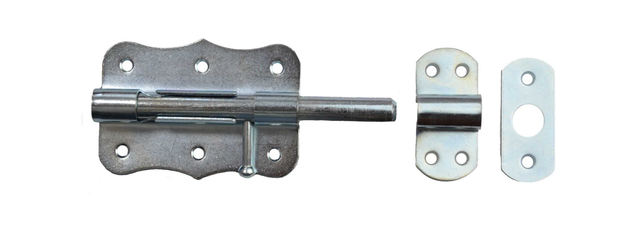 Úvod » Bránové systémy » Petlice, rýgle a mechanické zajištění vrat » Petlice univerzální 100 mm, bílý zinek