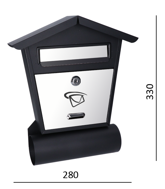 Schránka poštovní (280x330x50mm) nerez/černá, max. 1 formát listu: B6, leštěná nerez /AISI430