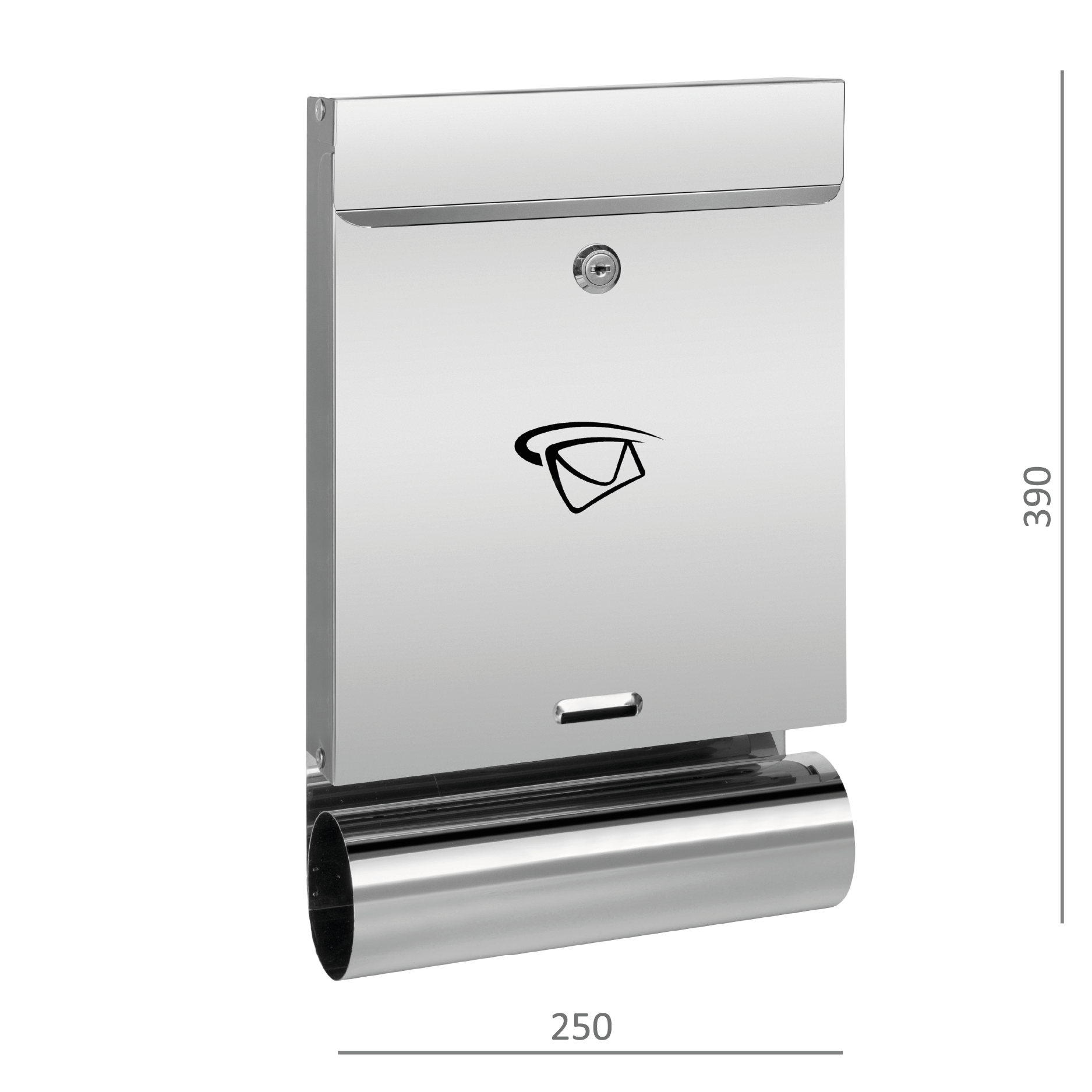 Poštovní schránka (390x250x60 mm), vhoz (20x240 mm) max. formát listu: A4, leštěná nerez /AISI304