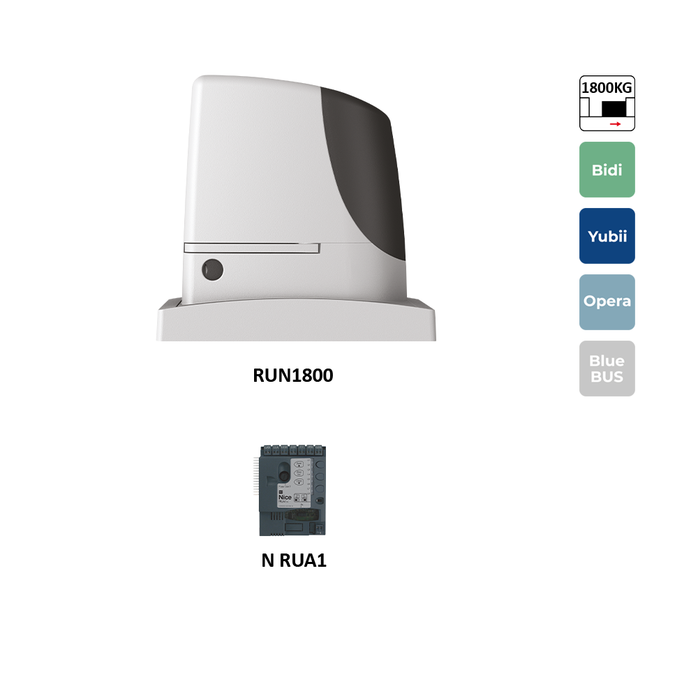 Pohon pre posuvnú bránu do 1800kg, 1x RUN1800 (230V, 700W, 1110N), 1x RUA1 BlueBus.