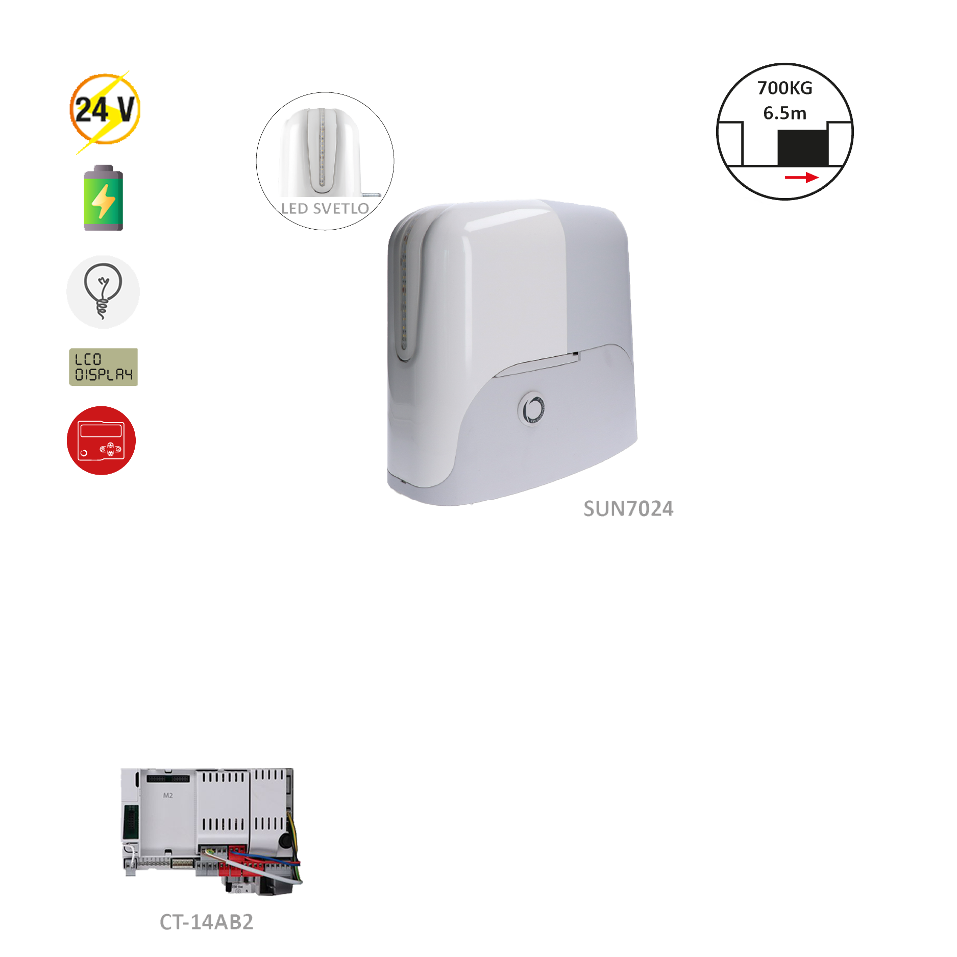 SUN7024 pohon pro posuvnou bránu do 700 kg, 24 V, 34 Nm, 345W, 1x SUN7024, 1x CT-14A