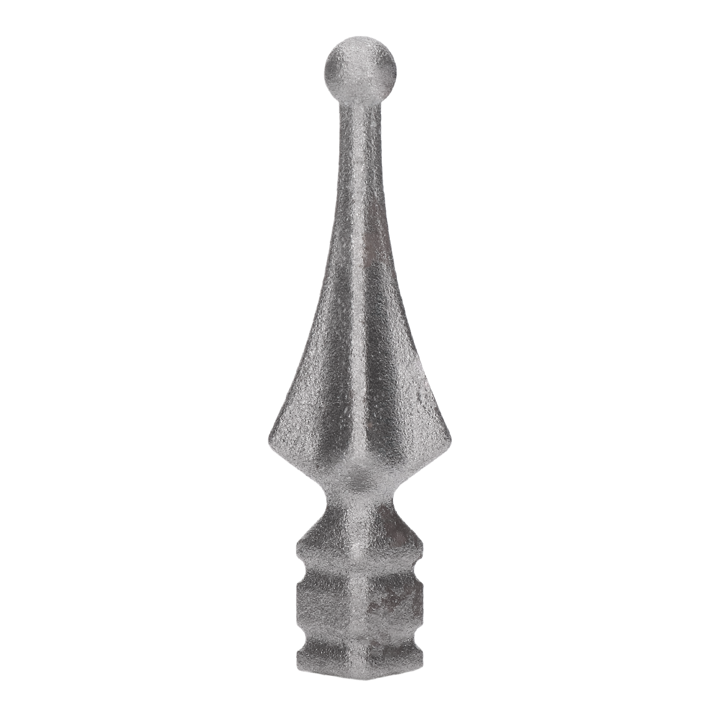 Ukončení - hrot kovaný 125 x 30 mm, rozměr napojení 20 x 20 mm, bez povrchové úpravy. Produkt je v surovém stavu vhodný pro svařování a zinkování. Použití na brány, ploty, oplocení a zábradlí.