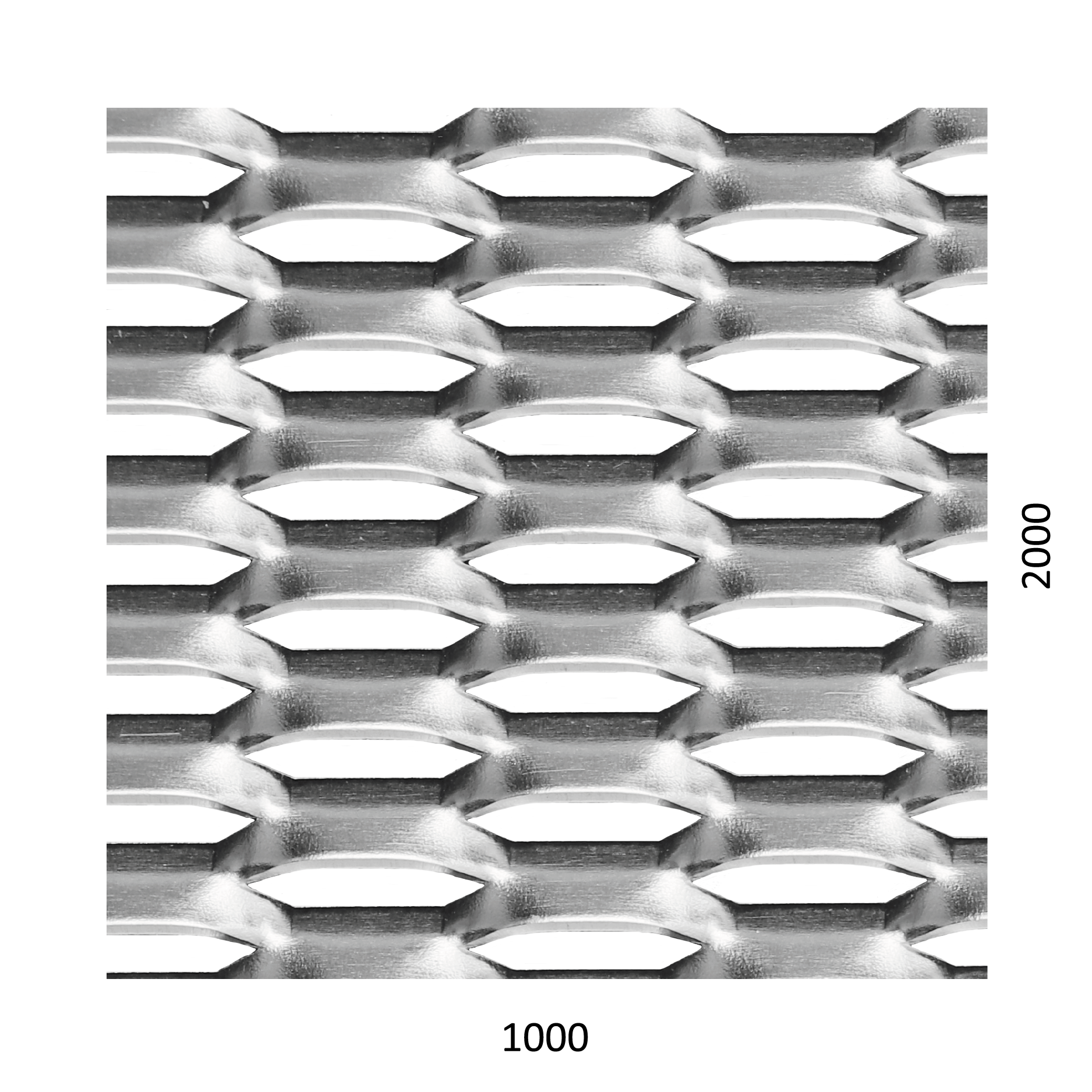 Úvod » Hliníkové polotovary » Hliníkové tahokovy » Tahokov Al, kosočtvercové oko, mostík: 5mm, 1000x2000x2mm