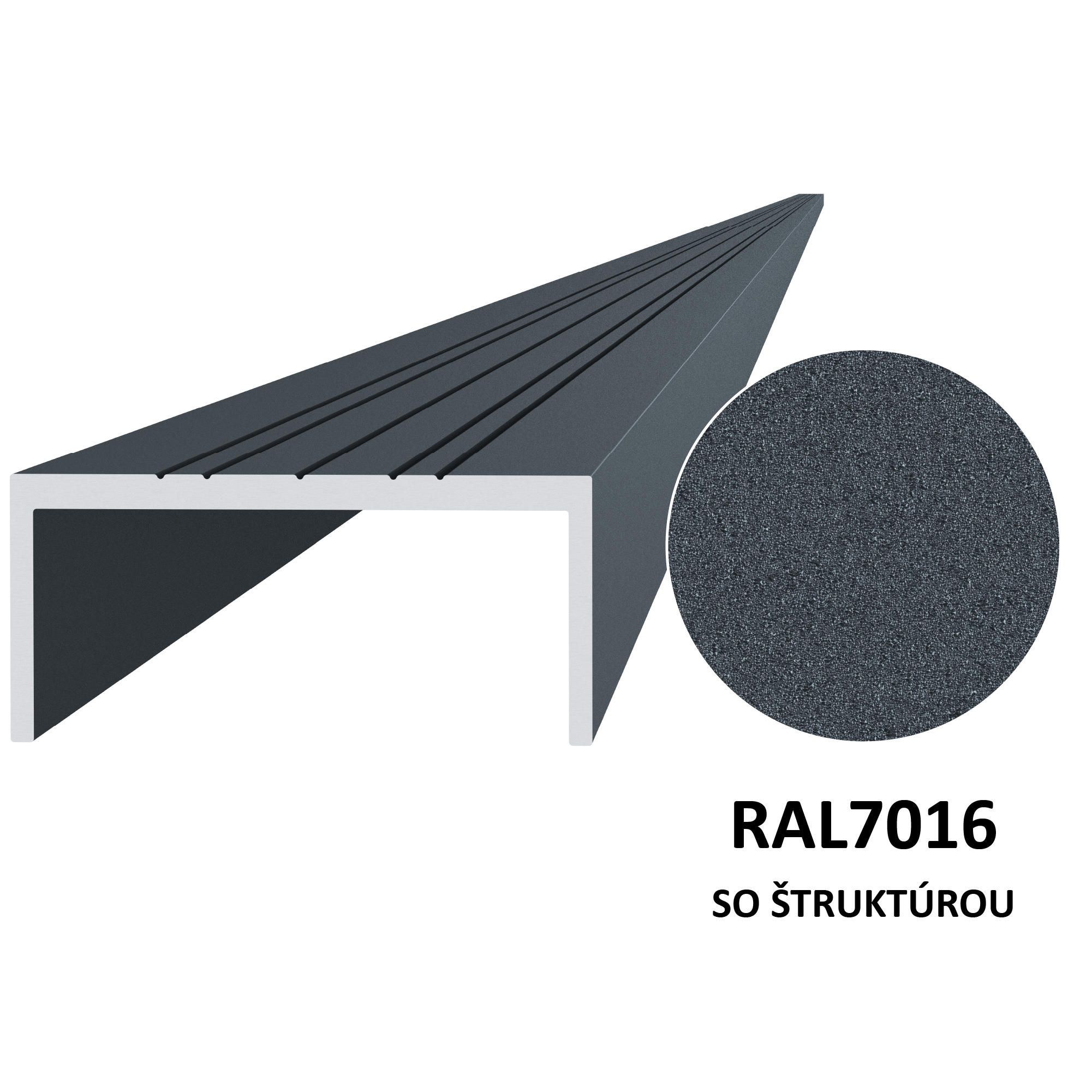 U profil 50x22mm, L-6000mm, práškový lak, struktura RAL7016