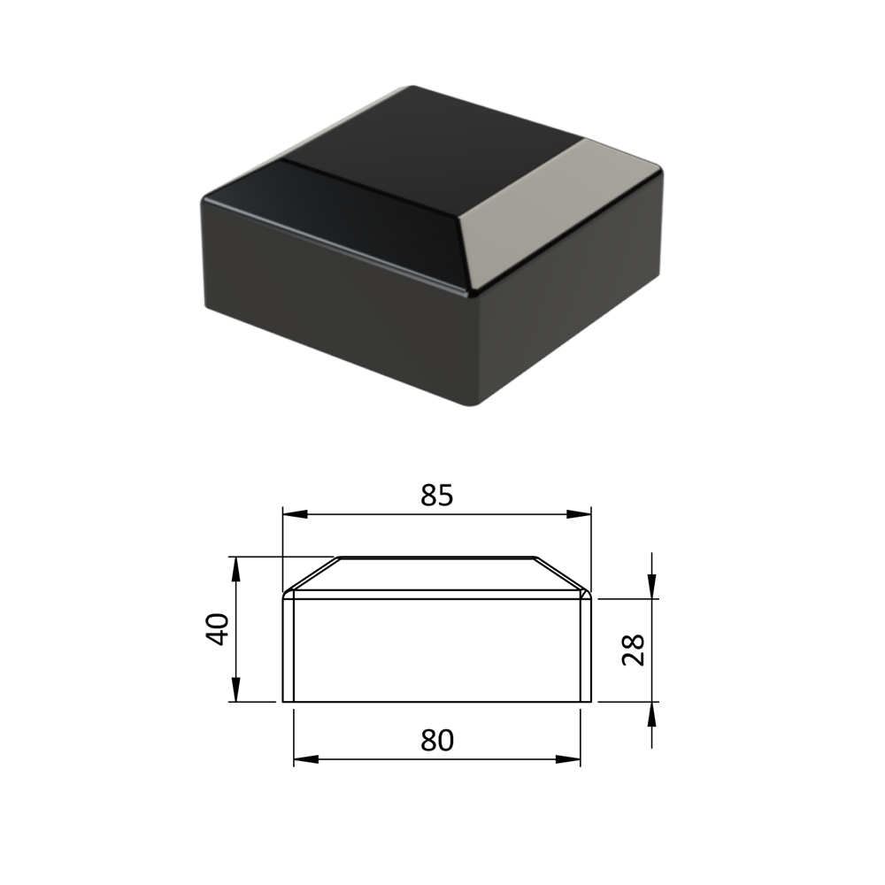 Úvod » Dům, dílna, zahrada » Zátky, stříšky, nivelační nožičky » Plastové zátky vnější » Vnější krytka 80 x 80 mm, plastová PE, černá