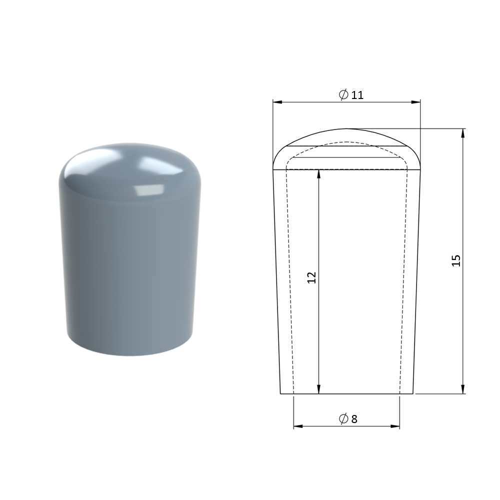 Úvod » Dům, dílna, zahrada » Zátky, stříšky, nivelační nožičky » Plastové zátky vnější » Vnější krytka PVC ø 11 x 15 mm, otvor 8 x 11 mm, šedá