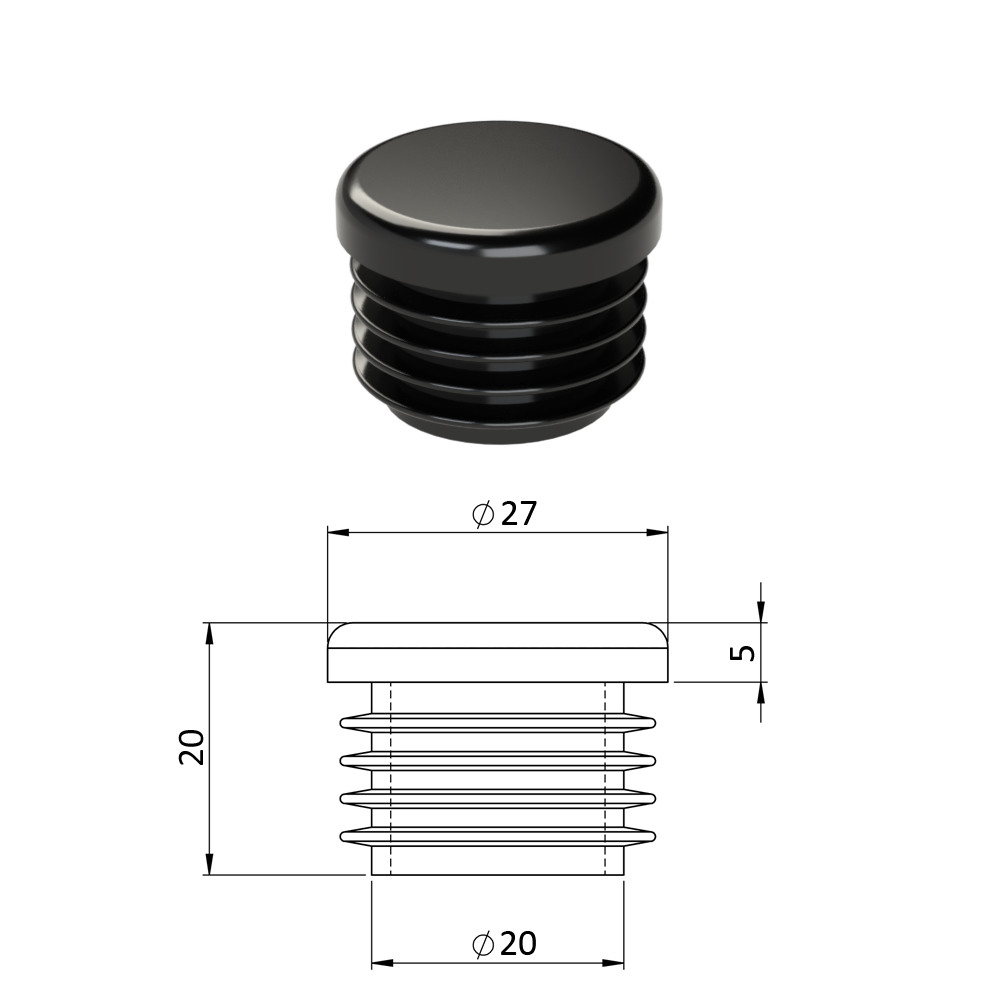 Úvod » Dům, dílna, zahrada » Zátky, stříšky, nivelační nožičky » Plastové zátky » Vnitřní krytka kulatá ø 27mm, plastová, černá